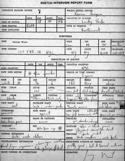 I began to schedule the meetings. Officer Sampson met the eyewitness, produced the sketch, left the sketch on site, and then telephoned upon leaving. I would immediately place a call to the eyewitness and fill out the questions listed on my Police Report Form. Afterward, I would arrange to collect the composite.