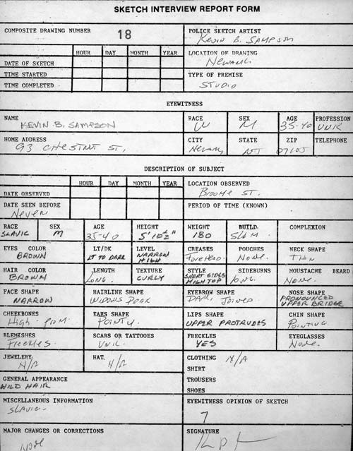 Composite Artist: Officer Kevin Sampson of the New Jersey State Police Department