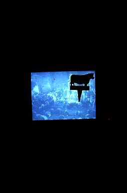 1923 version of "The Ten Commandments". The cow stuck over his is plastic painted with gold leaf and labeled RARE that was stuck in my hamburger while discussing the work over lunch with the exhibition curator.